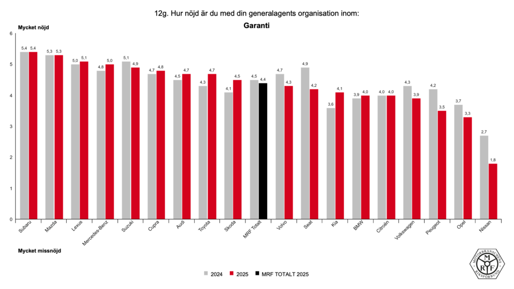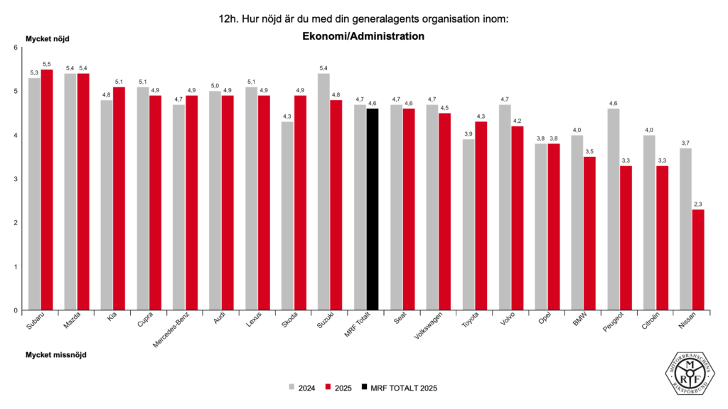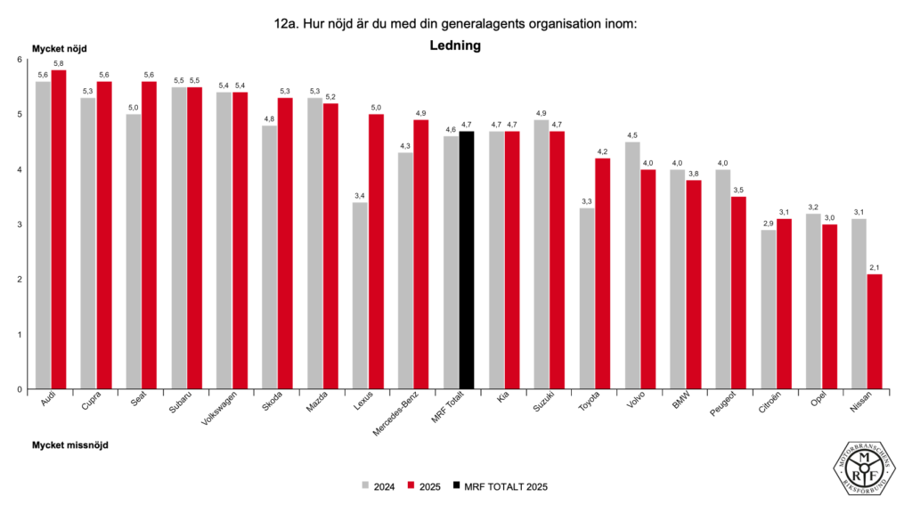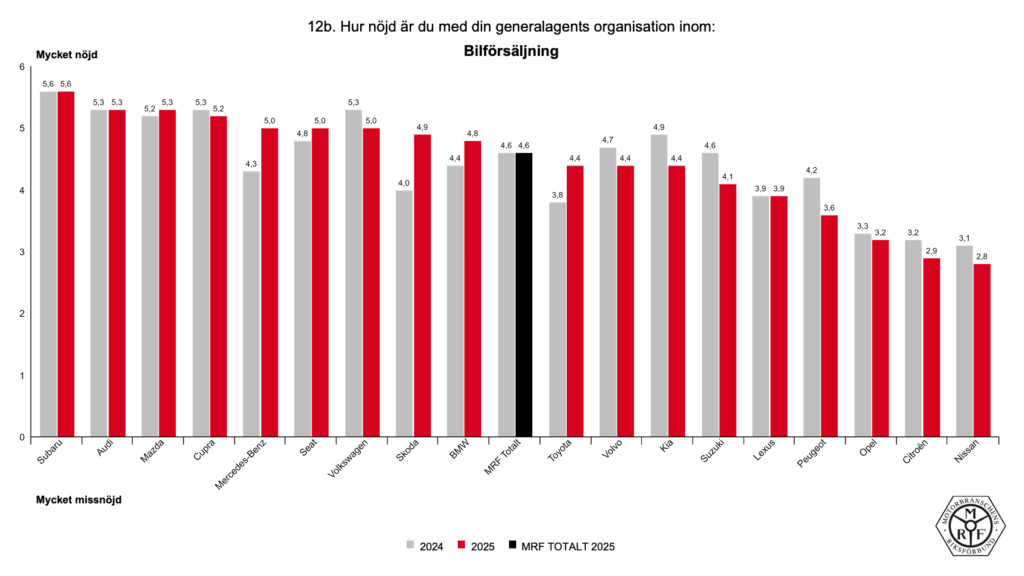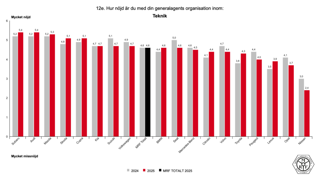 12. Organisation 01. LYHÖRDHET FÖR SYNPUNKTER 02. MARKNADSFÖRING 03. NYBILSFÖRSÄLJNING 04. PROBLEMHANTERING 05. BEGAGNATHANTERING 06. SÄLJARUTBILDNING 07. SERVICEMARKNADSFRÅGOR 08. GARANTISYSTEM 09. SERVICEUTBILDNING (FÖRBRÄNNINGSMOTORER & TRAD. DRIVLINA) 10. SERVICEUTBILDNING (ELEKTRIFIERING) 11. ÅF-UTVECKLING 12. ORGANISATION 13. SAMARBETE MED MÄRKESFÖRENING 14. TOTAL NÖJDHET
