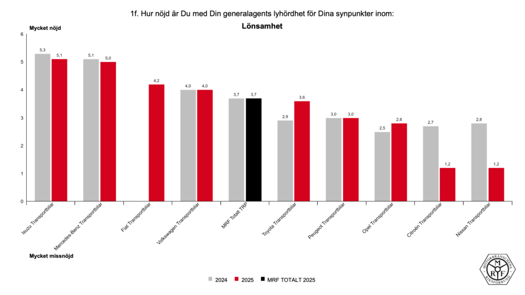 01. Lyhördhet för synpunkter 01. LYHÖRDHET FÖR SYNPUNKTER 02. MARKNADSFÖRING 03. NYBILSFÖRSÄLJNING 04. PROBLEMHANTERING 05. BEGAGNATHANTERING 06. SÄLJARUTBILDNING 07. SERVICEMARKNADSFRÅGOR 08. GARANTISYSTEM 09. SERVICEUTBILDNING (FÖRBRÄNNINGSMOTORER & TRAD. DRIVLINA) 10. SERVICEUTBILDNING (ELEKTRIFIERING) 11. ÅF-UTVECKLING 12. ORGANISATION 13. SAMARBETE MED MÄRKESFÖRENING 14. TOTAL NÖJDHET
