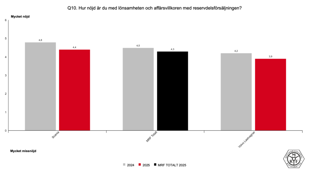 10. Reservdelsförsäljning 01. KOMMERSIELLA VILLKOR 02. AFFÄRSUTVECKLING 03. DIGITALA TJÄNSTER 04. SERVICEAVTAL 05. FÖRSÄLJNING 06. RESERVDELSTILLGÅNG 07. GARANTIER 08. UTBILDNING 09. UTBILDNING (ELEKTRIFIERING) 10. RESERVDELSFÖRSÄLJNING 11. ADMINISTRATION 12. TILLGÅNG 13. RISKHANTERING 14. KVALITET PÅ UTBILDNING 15. UTBILDNING INFÖR FABRIKSKLARA FORDON 16. MARKNADSFÖRING 18. UTVECKLING 19. SAMARBETE OCH MÄRKESFÖRENING 20. TOTAL NÖJDHET