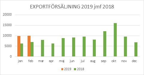 Under samma period har exporten ökat med ungefär 50%, vilket betyder att exportvolymen redan gått upp med 6 636 bilar mot de höga antal vi hade under rekordåret 2018.