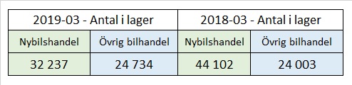 Nybilshandeln ligger därmed på samma volymer under kvartal 1 2019 som 2018 medan den övriga bilhandeln tappat 8% under kvartal 1.