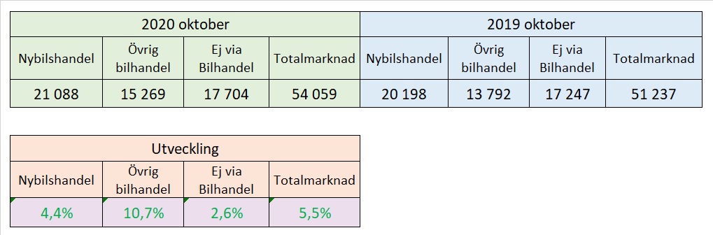 Övrig bilhandel: Handel via bilhandlare som inte har nybilsförsäljning, d v s begagnathandlare.